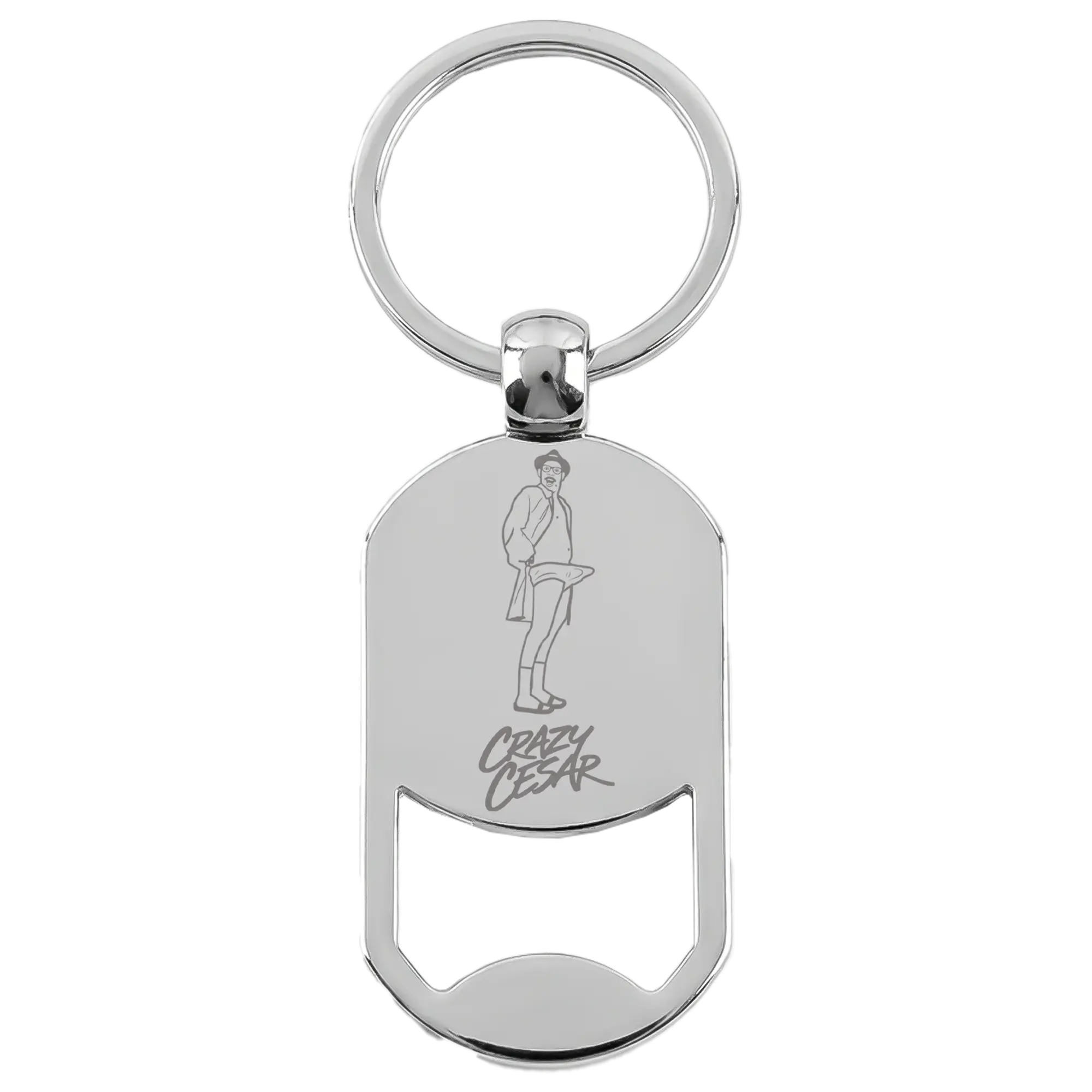 🔑🍺 Compact bottle opener keychain with Crazy Cesar engraving. Stainless steel, durable, and perfect for everyday carry.