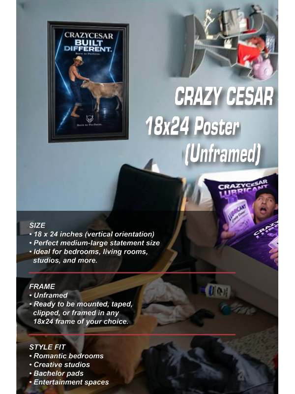 The Crazy Cesar Poster captures strength and performance energy in a bold 18×24 wall art design.