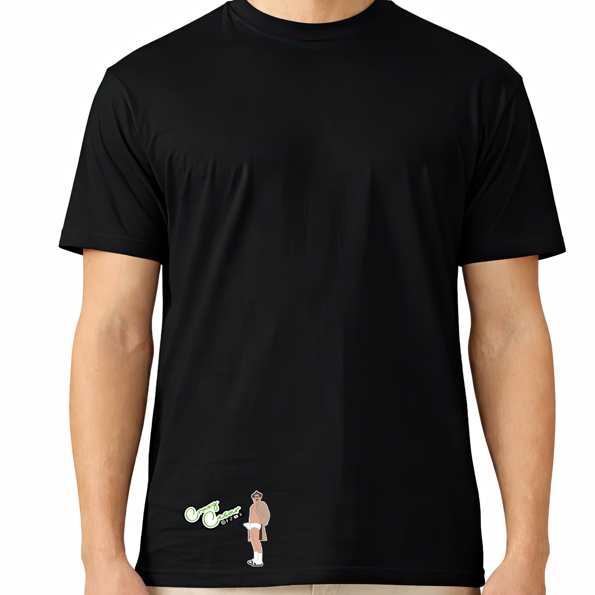 The Crazy Cesar graphic tee is designed for fans who enjoy bold humor and unique merch. This shirt features a minimal Crazy Cesar character graphic placed near the lower part of the design, giving the shirt a clean and modern appearance.
