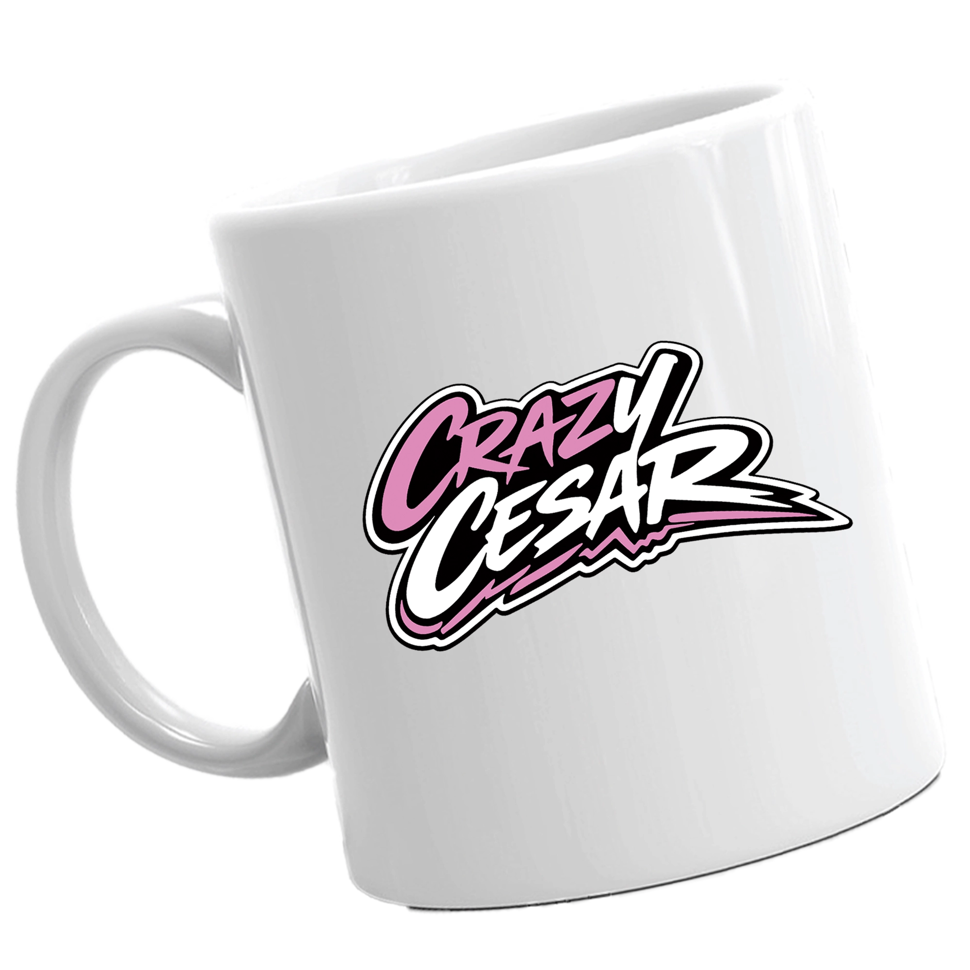 🔥 Bold Crazy Cesar logo mug with pink and black design. Durable ceramic coffee cup perfect for daily use and creators.