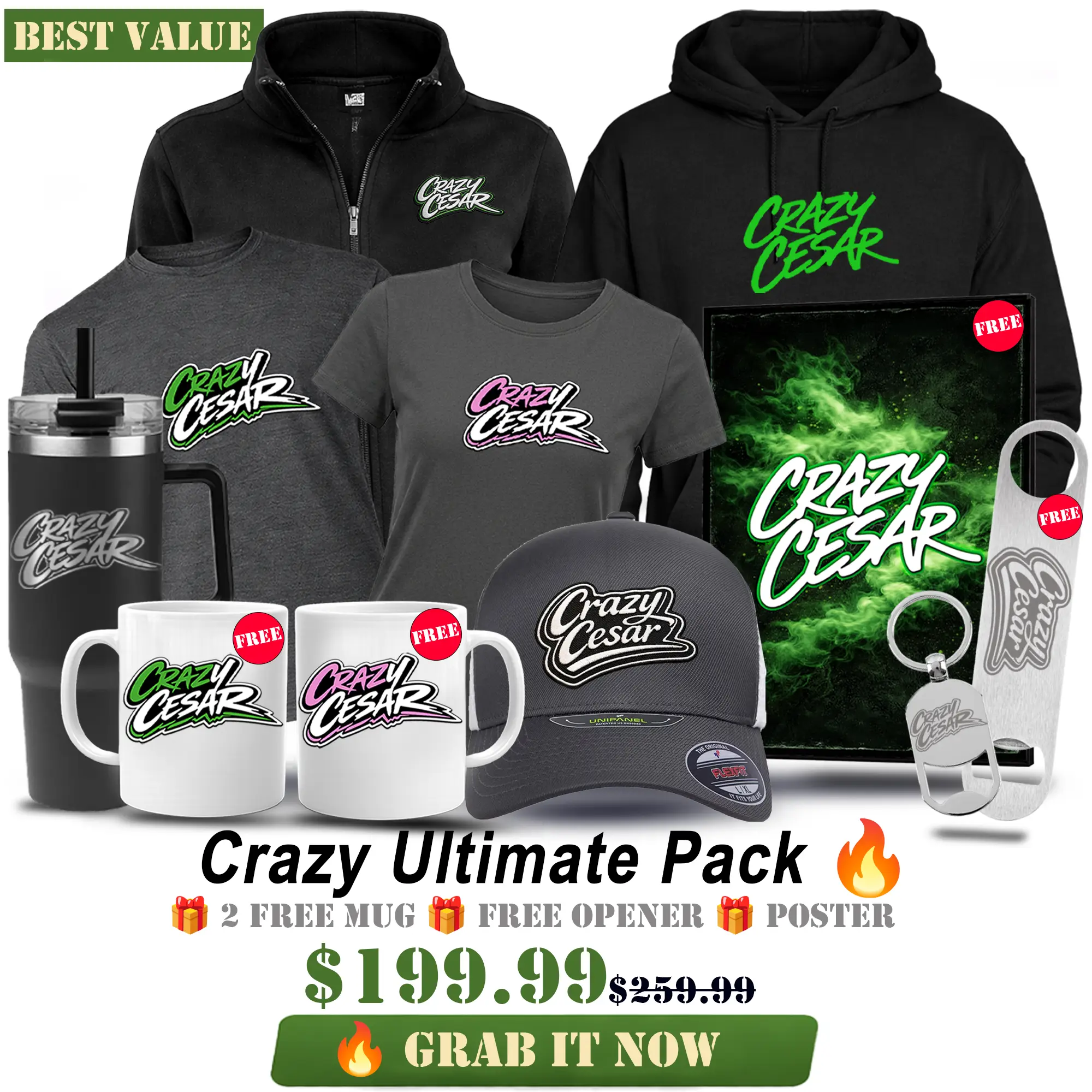 The ultimate Crazy Cesar bundle — built for real fans who want the full experience.