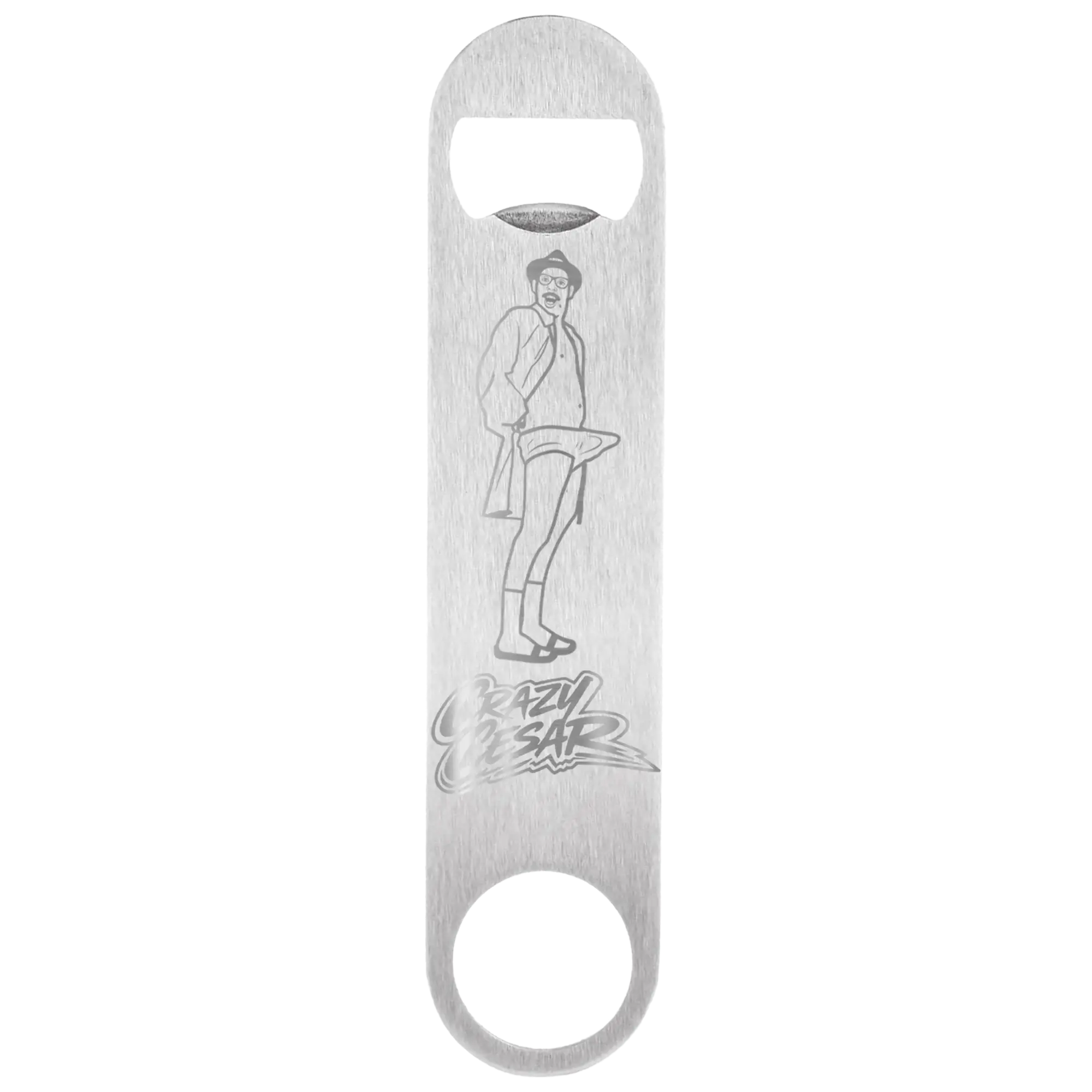 🍺 Stainless steel bottle opener with bold script Crazy Cesar engraving. Durable, clean, and perfect for everyday use or merch.