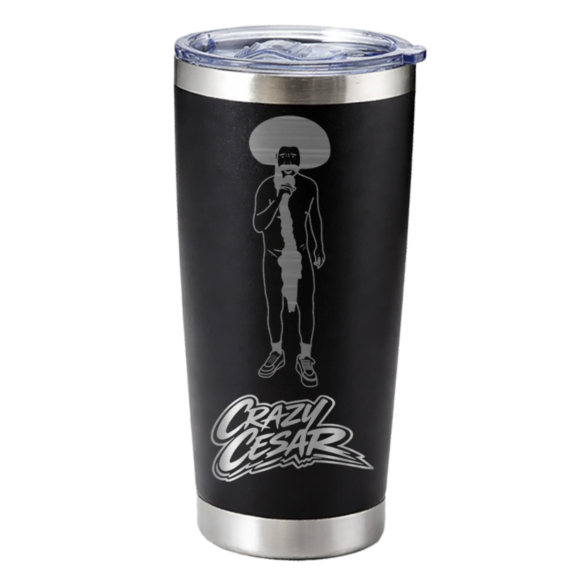 The subtle Crazy Cesar logo gives the tumbler a clean branded look without being overly flashy.