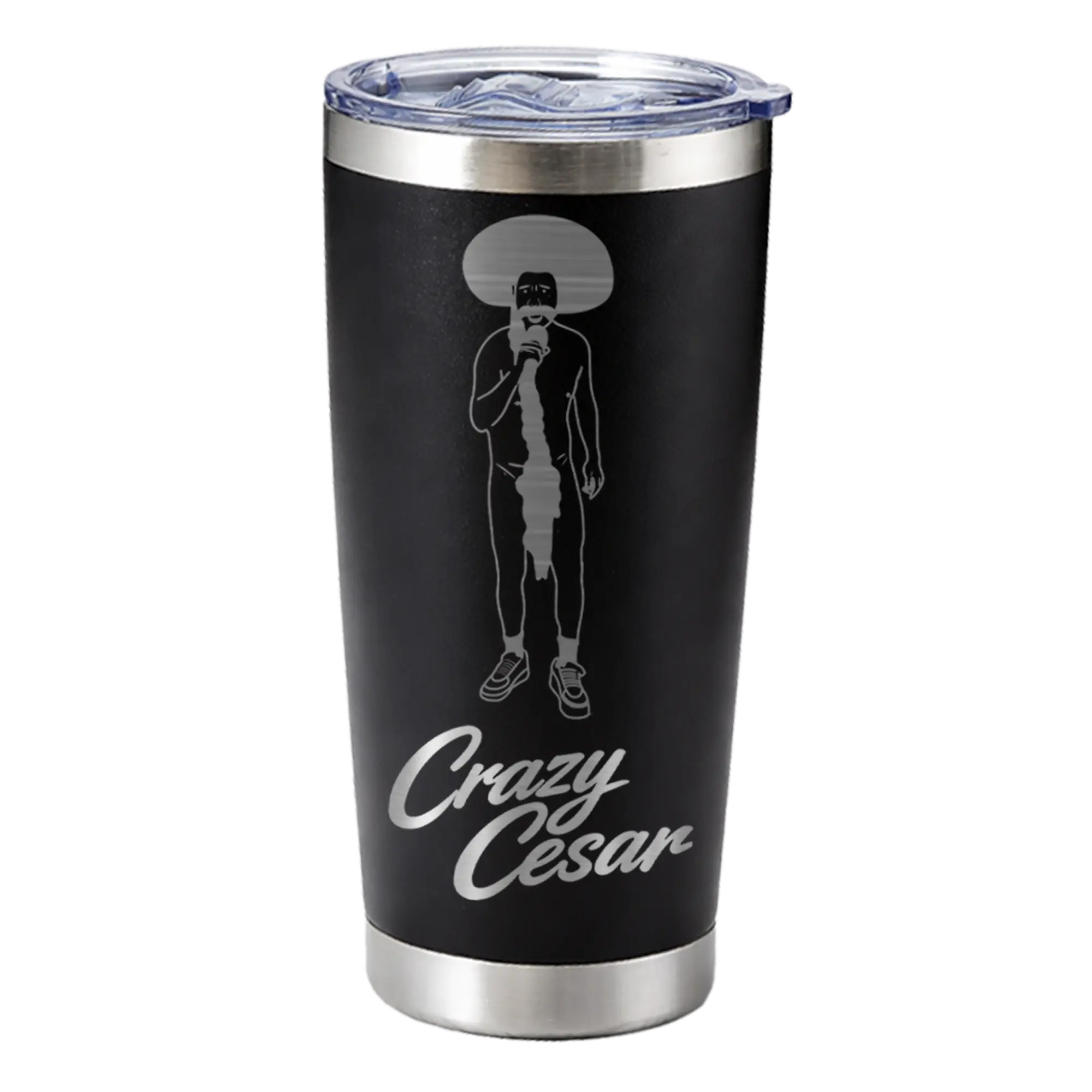 The subtle Crazy Cesar logo gives the tumbler a clean branded look without being overly flashy.